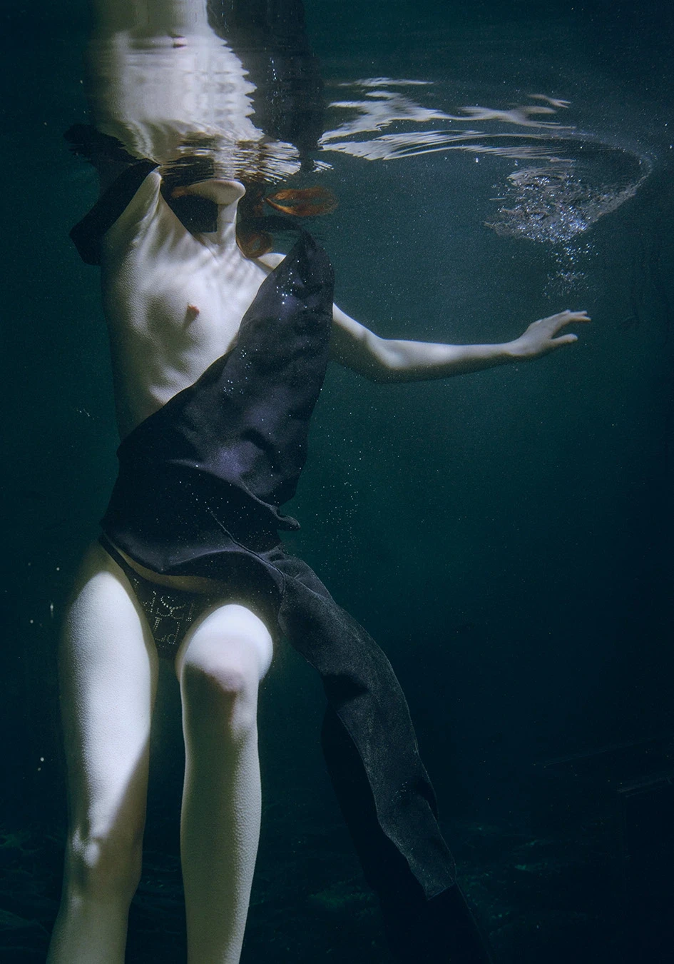 Héroïne #1 was inspired by water’s mythologies, think Médusa, Venus and Shahmeran. She portrays feminine sexuality and the struggle it is, for anyone who feels feminine, to address it. And who better than Ludovic de Saint Sernin to address sexuality? The symbolism through mermaids, ice cubes or snakes, hints at the idea of the Héroine’s hidden sexuality. A sexuality that is genuine and sacred to her, yet one that it is not easy to address when it comes to the rest of the world. Ludovic de Saint Sernin’s mystique aura brings a darkness which gently uncovers into a unique fragility. The authentic portrayal of an intimate struggle through fantasy is executed gracefully. It leaves a bittersweet feeling, reminiscent of the reality of intimacy in every individual’s reality.