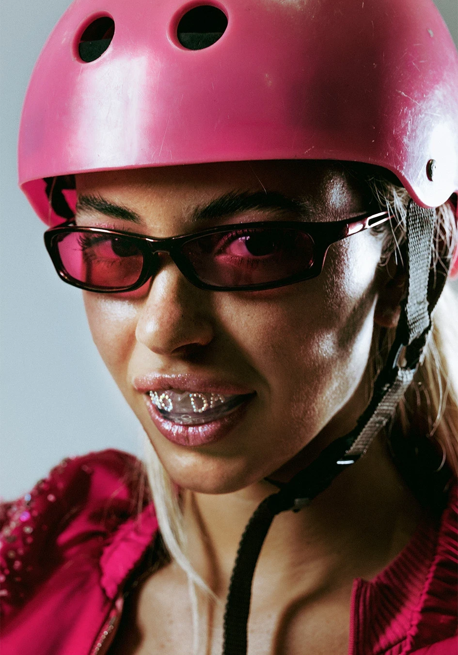 In selecting Nodaleto as her jumping off point, Ferrié aimed to maintain a strong thoroughline of the brand’s identity, while also challenging them creatively - a consistent theme throughout the overall project. The final images of Ferrié’s self-styled shoot capture the gritty ruthlessness of this pair, but her retro artistic direction and dynamic shots bring levity and quite a bit of fun to the piece. In another twist, Ferrié actually cast two real-life sisters to embody the roles, as she felt that a high level of comfortability between the models was key for executing such a brawl, perfectly encapsulated by their battered faces and the stomach-turning finger-stomping (portraying a level of aggression that anyone with a sibling can relate to some degree). Such action packed images are no challenge for Ferrié, being a dancer herself, and physicality and movement are consistent motifs in her work, within this collection and beyond.