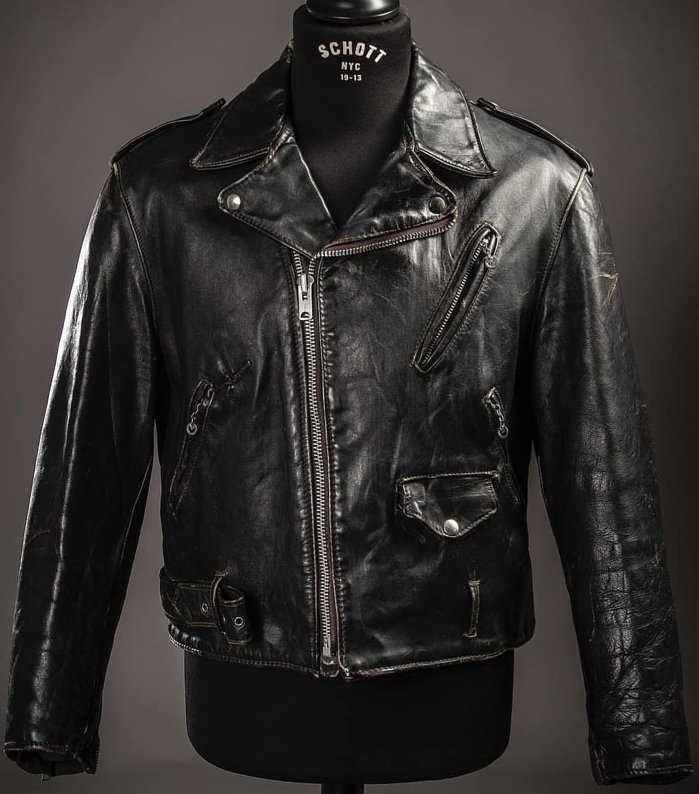 Taking notes from the practical wind-proof leather military jackets, Irving Schott introduced the first leather motorcycle jacket in 1928, naming it the ‘’Perfecto’’ after his favorite Cuban cigar. Made from horsehide, the jacket featured a belted front, shoulder epaulettes, a double-breasted cut, asymmetrical pockets, and an asymmetrical zipper, all designed to keep riders warm and unrestricted in windy riding conditions. It was sold for $5.50 at a Long Island Harley-Davidson dealer and was embraced by some early motorcyclists. However, most bikers still wore heavy-duty sweaters, varsity jackets, and overalls that wouldn’t exactly resonate as tough and ‘’biker’’ with a modern audience.